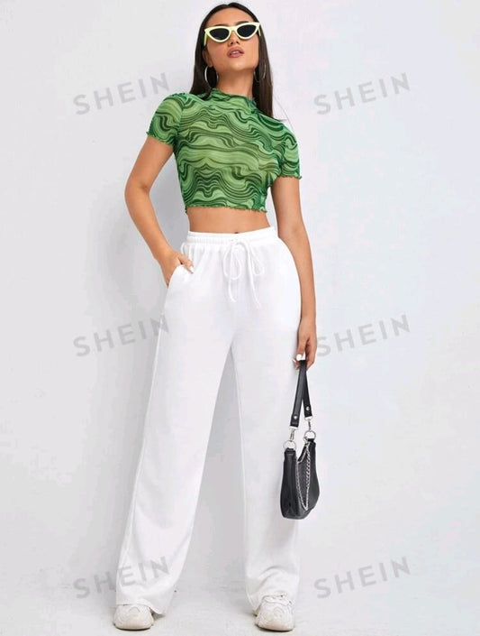 SHEIN ICON Tops de mujeres Acaracolado Transparente Ribete