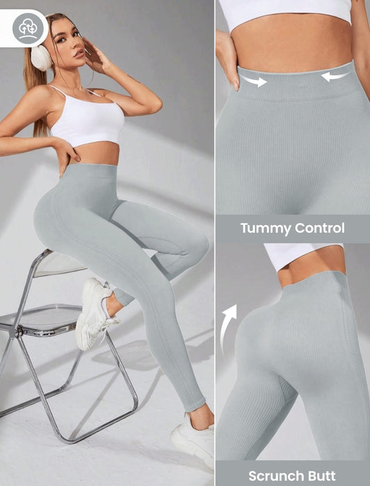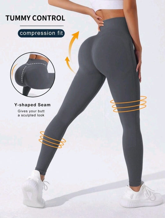 SHEIN Sport Studio Leggings De Yoga Sin Costuras De Alta Elasticidad Con Control De Abdomen Para Gimnasio