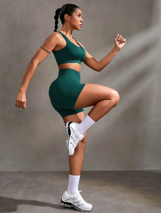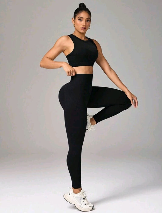 Conjunto SHEIN 2 piezas, Top y Mallas, Sujetador deportivo sin costuras