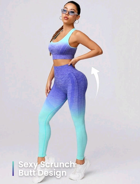 SHEIN Sport Studio Conjunto de yoga sin costuras para mujer con degradado de color