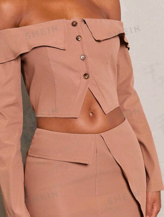 Firerie 2 piezas Conjunto de blusa con cuello mini falda corta