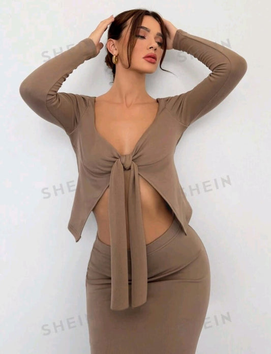 Precio habitual S/. 45.00Precio habitualPrecio unitario porPrecio de oferta S/. 45.00Glamine conjunto marrón texturizado y falda mini micro